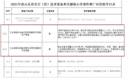 近日,山東省工業(yè)和信息化廳公示了《2021年度山東省首臺(tái)(套)技術(shù)裝備和關(guān)鍵核心零部件推廣應(yīng)用指導(dǎo)目錄》。濟(jì)南恒譽(yù)環(huán)??萍脊煞萦邢薰?/span>“工業(yè)連續(xù)化含油污泥熱裂解技術(shù)成套生產(chǎn)裝備”、 “工業(yè)連續(xù)化廢鹽資源化利用熱裂解技術(shù)及裝備”2項(xiàng)產(chǎn)品成功入選。