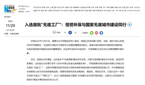 新華社旗下新華網(wǎng),環(huán)球時報旗下環(huán)球網(wǎng)等國內(nèi)多家知名媒體,以《入選首批“無廢工廠”:恒譽環(huán)保與國家無廢城市建設(shè)同行》為題,報道了恒譽環(huán)保響應(yīng)國家生態(tài)文明建設(shè)號召,在“無廢城市”建設(shè)中做出了突出貢獻。文章指出,恒譽環(huán)保在資源化技術(shù)創(chuàng)新、綠色低碳發(fā)展、打造一流無廢工廠等方面起到了行業(yè)引領(lǐng)示范作用。原文如下: